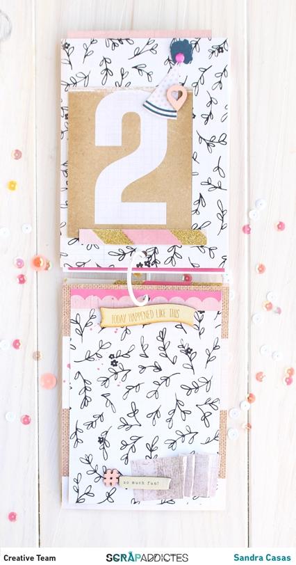 En las siguiente página he seguido con la misma estructura y los mismos papeles, y en el dos le he puesto un die cut que es un gorrito !queda genial!
