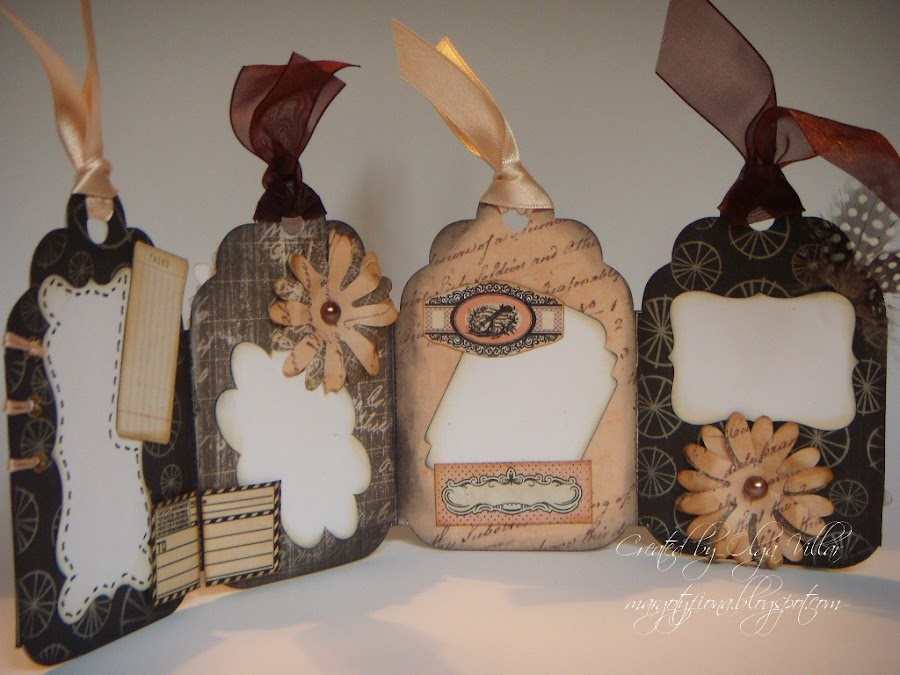 Y como hoy la entrada va de cosas pequeñitas, pues la leyenda de hoy también va en consonancia, solo comentar que para elaborar este tag desplegable, he utilizado papeles de la colección The Best de K & Company y adornos de la colección Almanac de Prima Marketing.