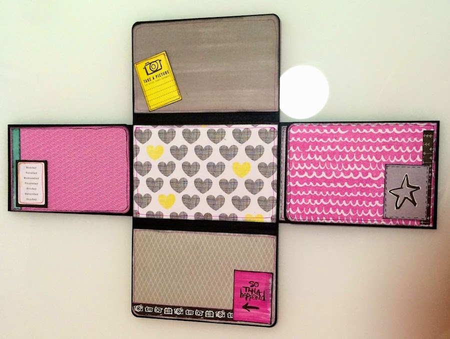 Es un mini album para poner fotos, el tamaño mas o menos es de 10x15cm. Es ideal para llevarlo en el bolso con las fotos de los niños (jijijiji)