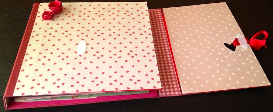 He acabado un mini album, en formato calendario de los 12 meses que sirve para cualquier año. Cada pagina tiene un bolsillo para poner una foto, para guardar tickets, recuerdos, lo que queramos. Los papeles decorativos son de la colección Corazonadas de Marisa Bernal, la parte de atras forrada con tela de encuadernacion y las paginas de cartulina texturizada en varios colores.