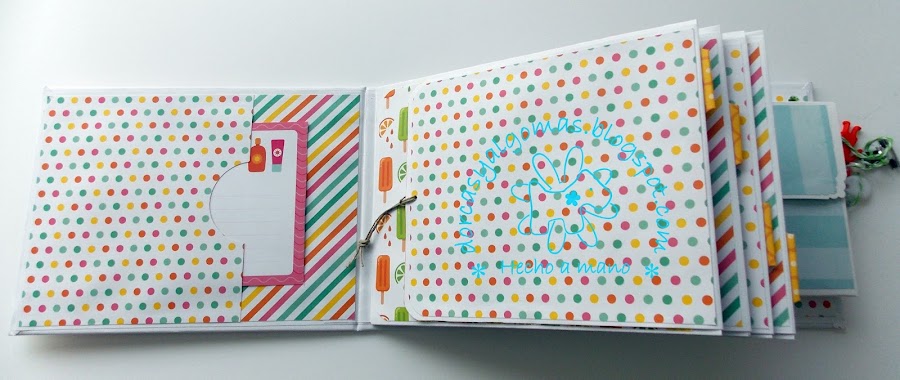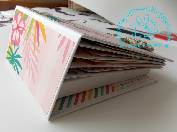 Hoy os traigo un mini álbum que realicé en el taller impartido por Marta González en Bricolor (Ponferrada). Para este mini álbum usé la colección "Mi Paraíso" de Anita y su mundo. Lleva la encuadernación en espina. Disfruté mucho con mis compañeras de taller haciendo este álbum.
