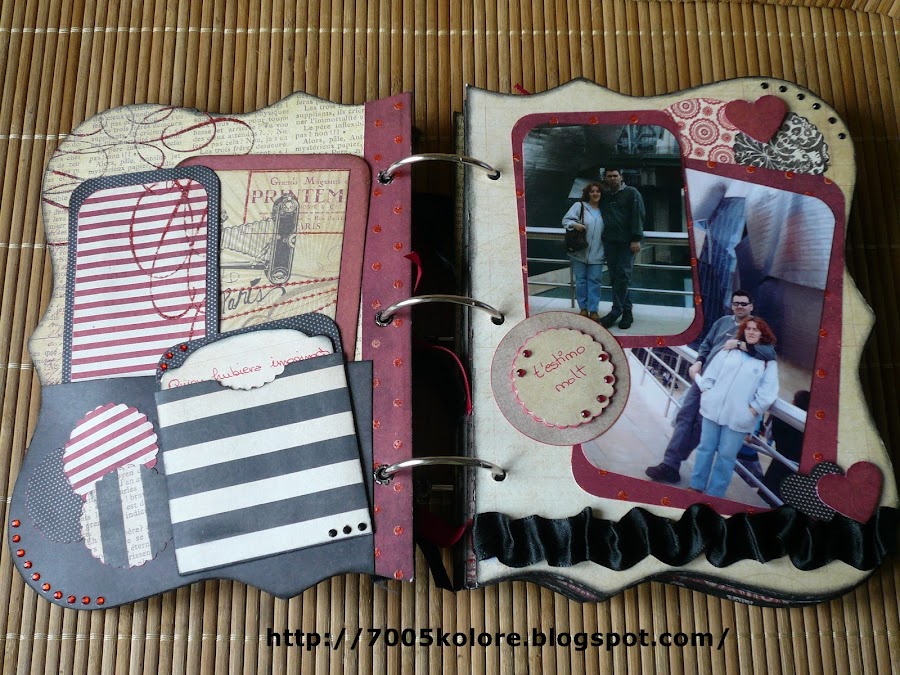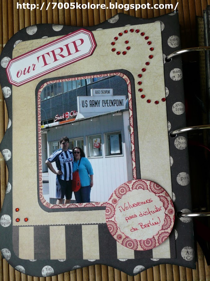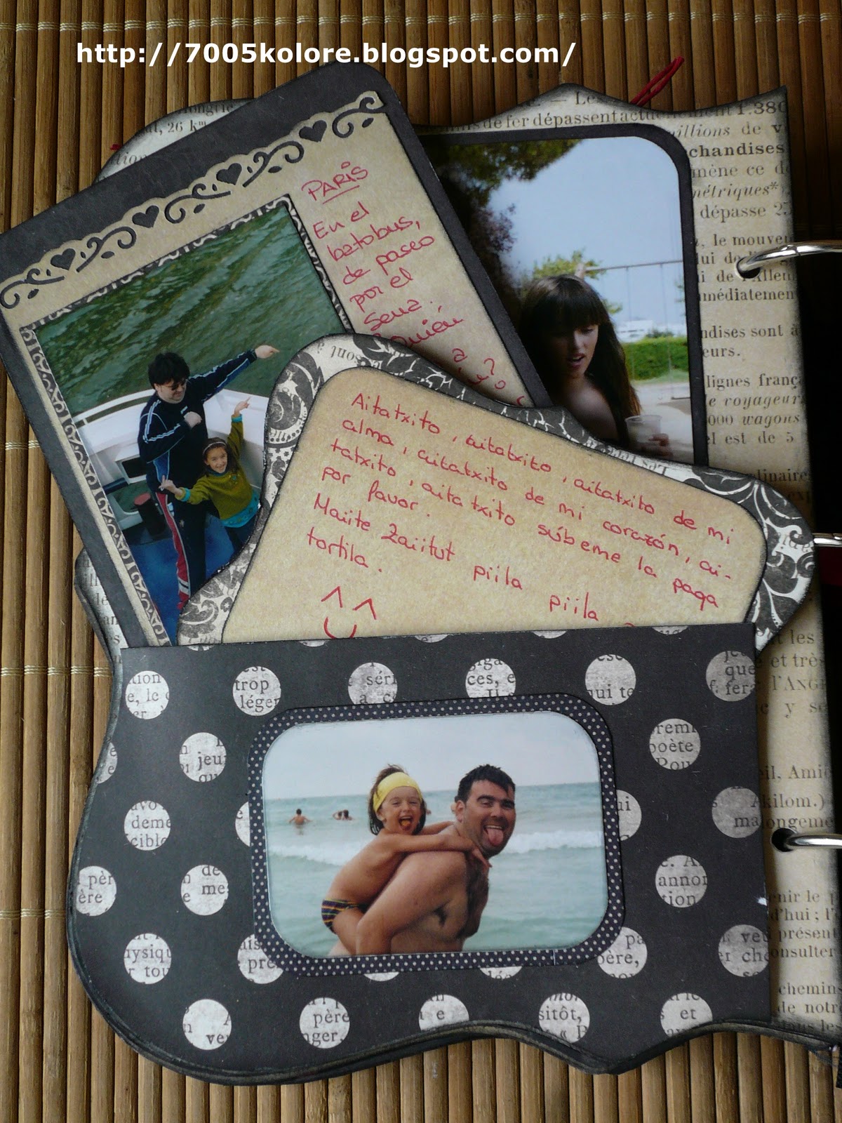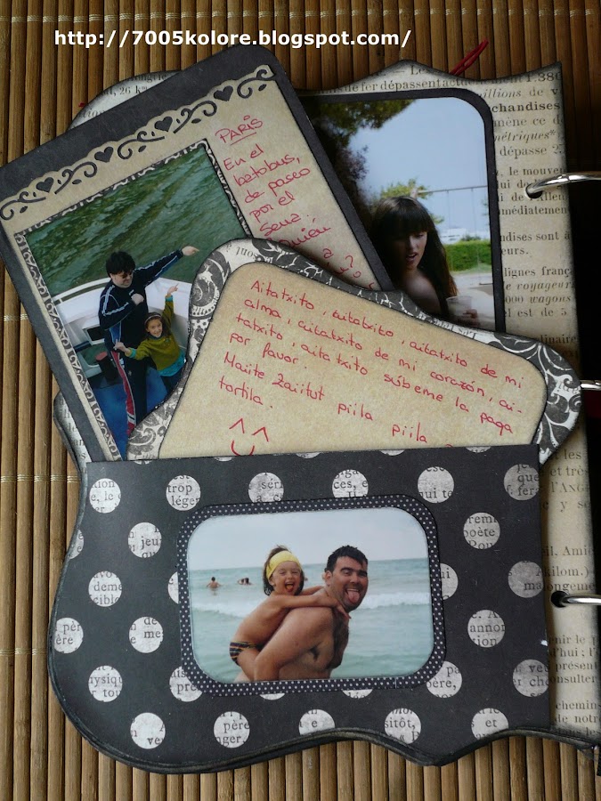 Para este trabajo, he utilizado papeles de My Mind"s Eye, de la colección Lost&Found - Union Square, un pad de 54 papeles que me enamoraron nada más verlos. He utilizado un precioso acetato decorado de Hambly, nunca había trabajado con este material, pero me ha encantado! para la portada he utilizado letras de CaroleesCreation y glossy, y me he estrenado con los charms, que hasta ahora no me hacían tilín pero tengo que reconocer que me he creado una adicción!!. Creo que estoy enganchada también a las tarjetas deslizantes, desde que aprendí a hacerlas no hay álbum en el que no ponga una como mínimo y es que quedan tan lucidas!!