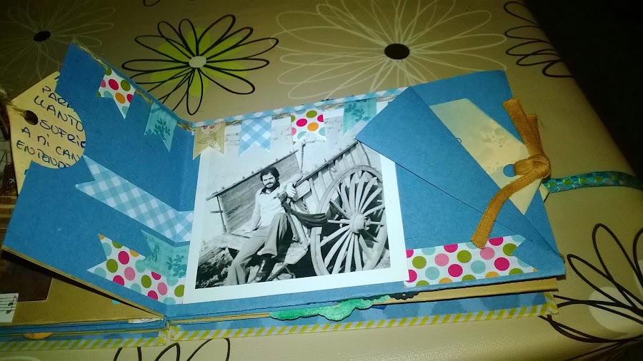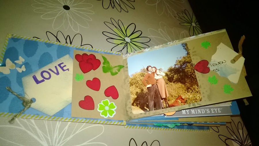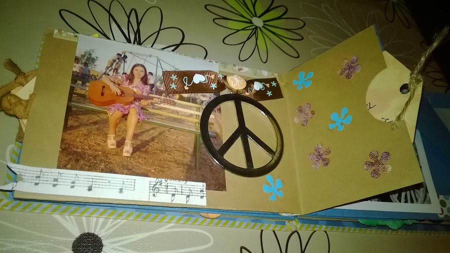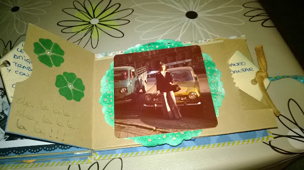 Hoy os voy a enseñar mi primer álbum de Scrapbooking, es un regalo que he hecho con mucho cariño y a los destinatarios les ha encantado, están contentísimos, jejeje, no dejan de mirarlo y mirarlo, "lo van a desgastar", en las crónicas de cada foto como no sabía que poner se me ocurrió escribir estribillos de canciones de aquellos años que tuvieran que ver con cada fotografía, ya que los destinatarios son amantes de la música, la idea es que cada vez que lo estén viendo a parte de recordar su juventud, también se pongan a cantar y el objetivo lo he conseguido. Bueno no me enrollo más y os pongo las imágenes para que lo veáis.