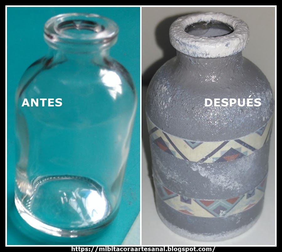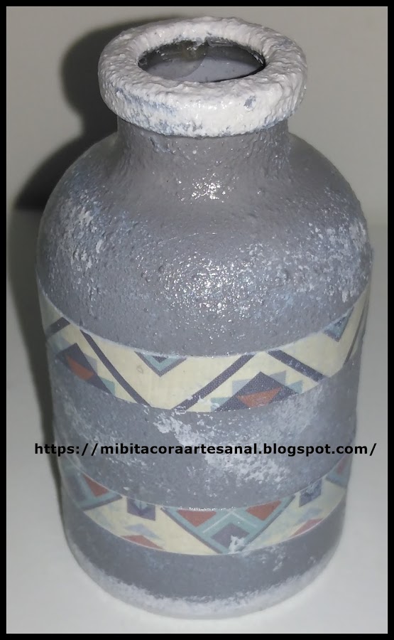posteriormente, tanto en la boquilla del bote como en la orilla de la base los pinté con chalk paint color gris niebla