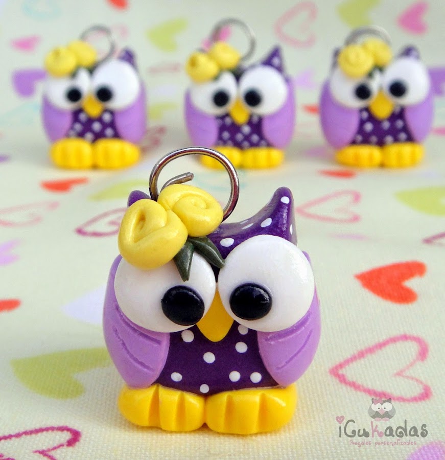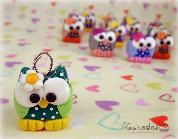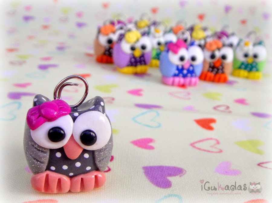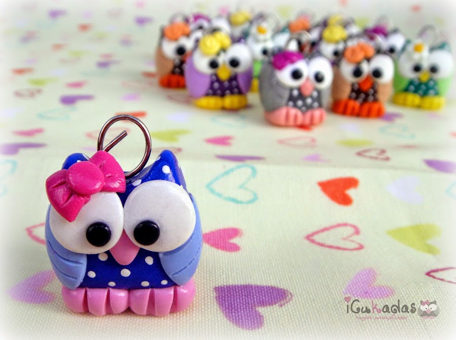 Primero fueron los búhos de fieltro, que muchos ya conocéis, y que si no, podéis ver AQUÍ, luego los que combinaban fieltro y tela, que tenéis AQUÍ, después llegaron los de fimo, como broches o como imanes para nevera, y que también están en el blog AQUÍ.
