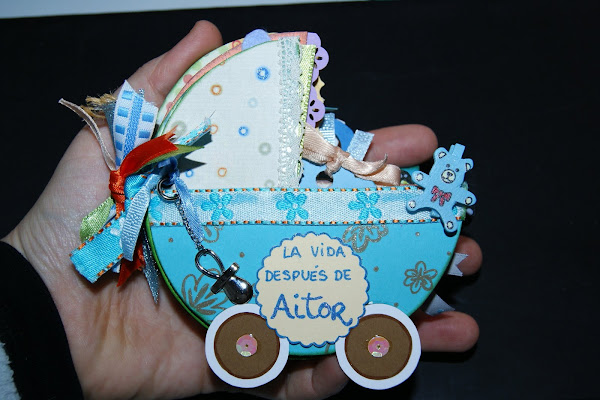 Hola ¿Cómo estáis? Empezamos la semana con un nuevo mes, ya cada vez más cerca de la primavera...Bueno hoy os quiero enseñar una cesta de pañales que he hecho para una amiga que pronto va a ser mamá de una preciosa niña, a la que va a llamar María. La cesta es en forma de carrito y está compuesta por un juego de sábanas de invierno, un chupetero, una diadema, un medallón angel de la guarda, una co ...