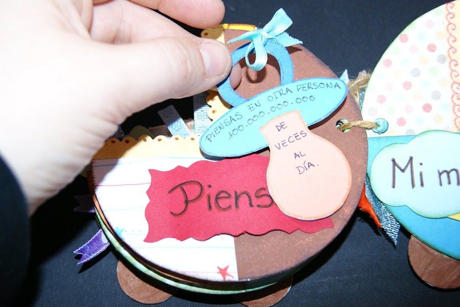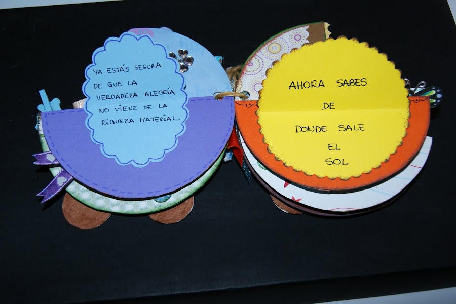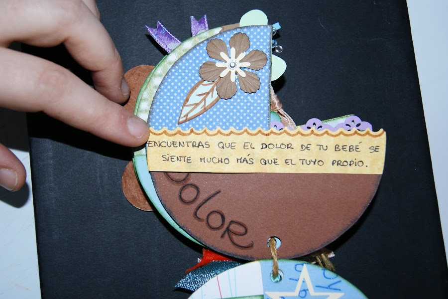 De todo el álbum hay algunas páginas que gustan mas que otras,en esta lámina hice un mecanismo que se llama fotos en cascada( waterfall, para las americanas) ...cuando estiras, las fotos van saliendo ...
