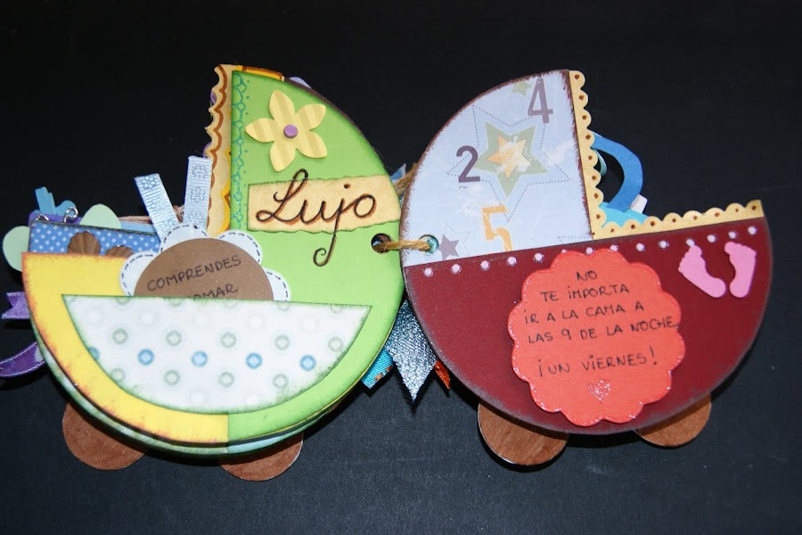 Hacía dias que quería hacerme un mini para bebés... no tengo un bebé en la mira, pero es que tenia unos sellos que quería usar y bueno, bebés siempre hay... Asi que cuando leí el reto de Yo y scrap pensé que era una oportunidad para participar y además usar esta combinación de colores que me ha encantado, es vibrante, no tan apastelada como habia pensado hacerlo en un comienzo. Este mini es " ...