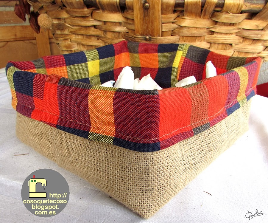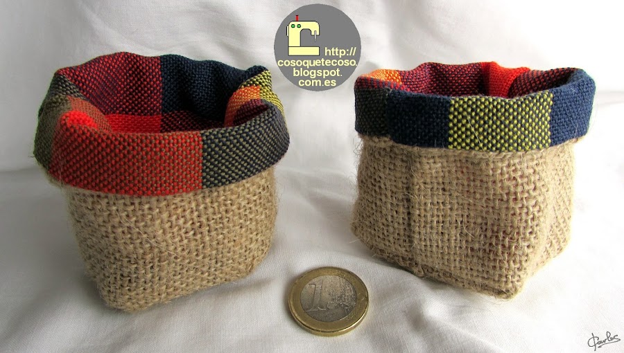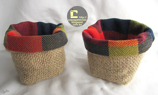 Entre las "cuchicosas" que dejé pendientes, fueron unos trocitos de arpillera que me sobraron al hacer esta cesta-bandeja, que os enseñé aquí: