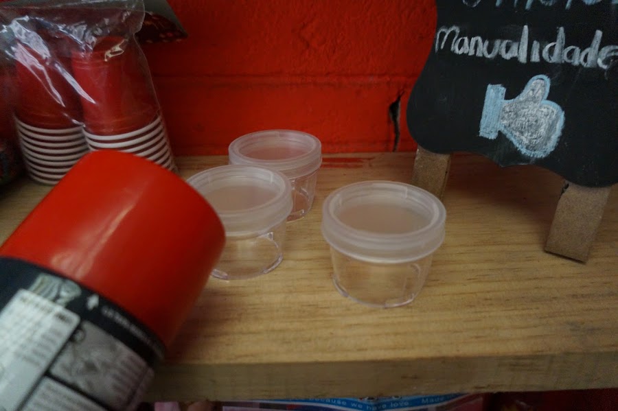 -Envases de plástico trasparentes, yo los conseguí en una tienda de venta de telas muy famosa en México con su lógo de color rojo.