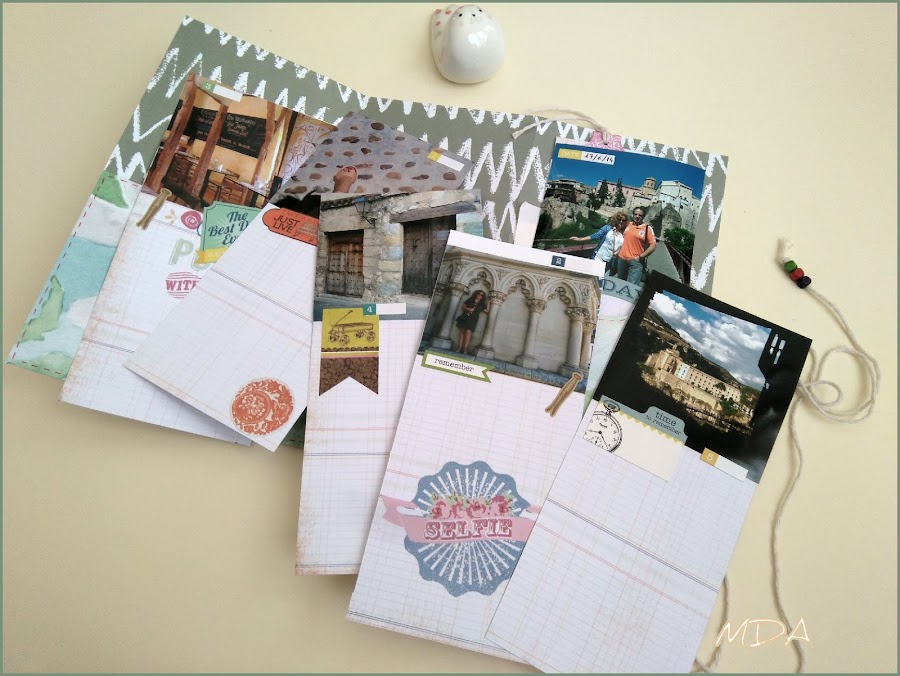 Y dentro de los bolsillos unas tarjetas con las fotos y espacio para escribir la crónica del viaje, además de todas esas cosillas que me encanta guardar.