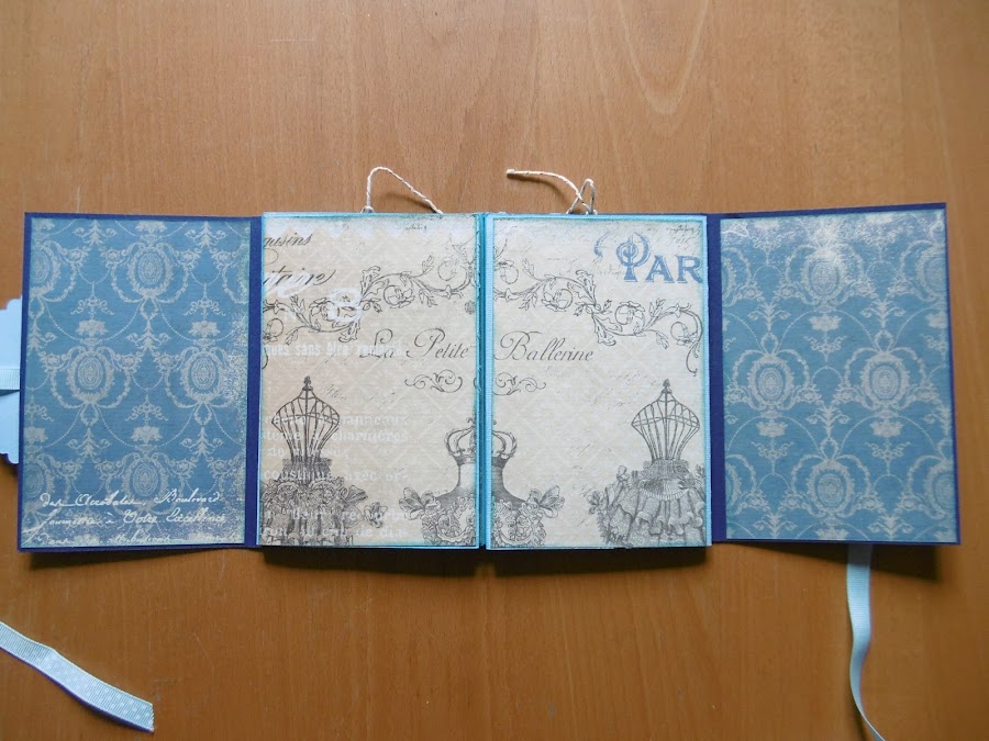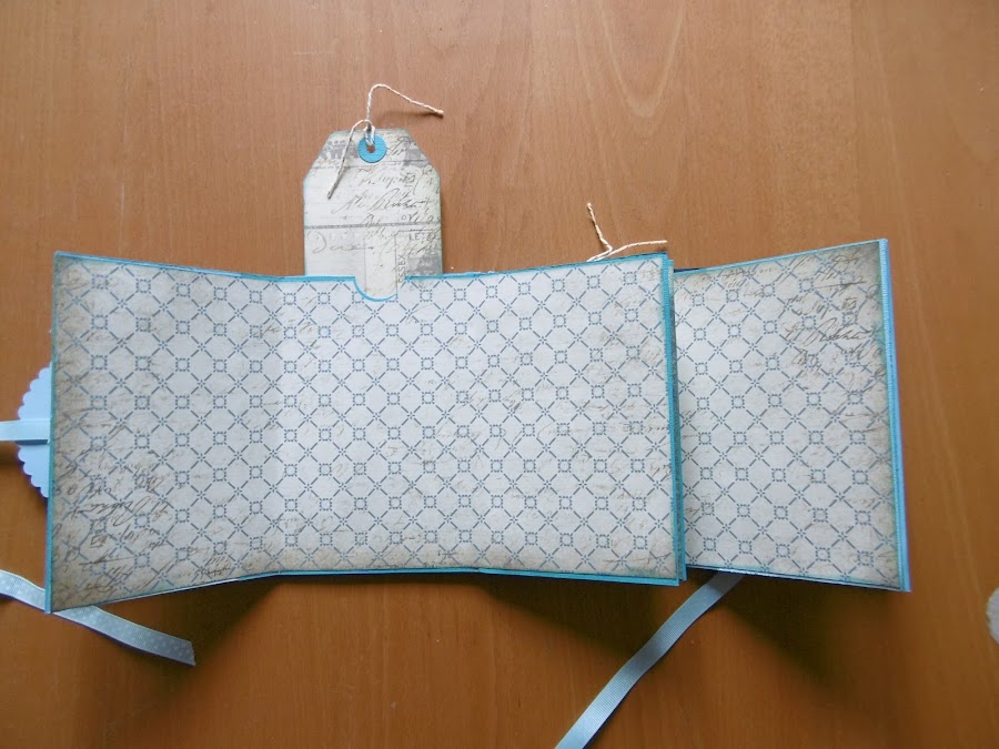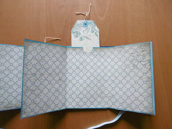 Esta es otra de mis variaciones, deje sin pegar un lado de la estructura para formar un bolsillo en la página mayor y coloque un tag, en su hermana gemela hice lo mismo.