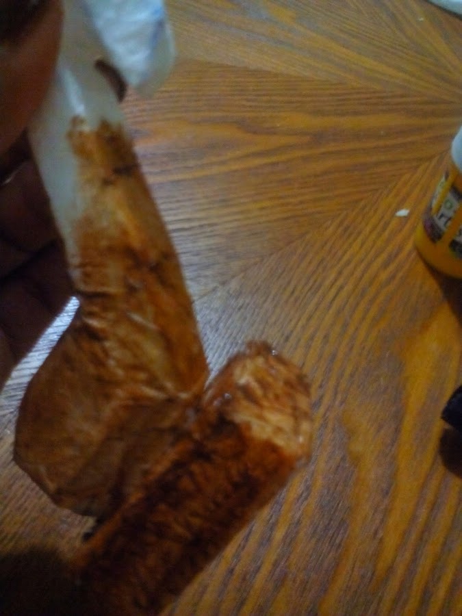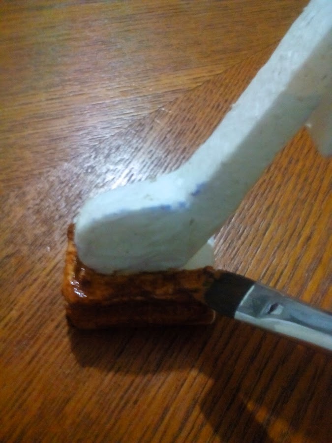 Al secar he pintado con color acrílico marrón, amarillo y unos toques dorados