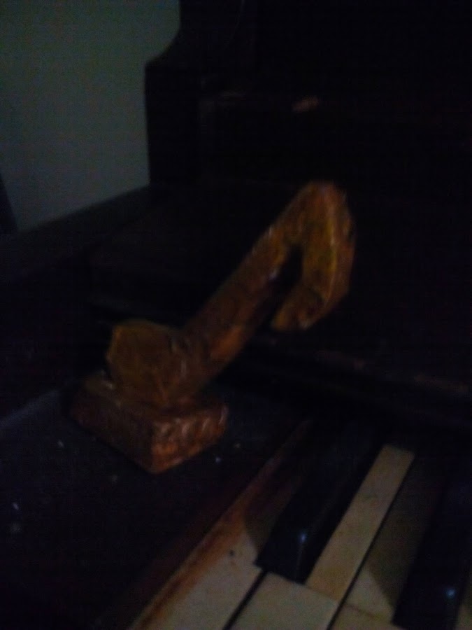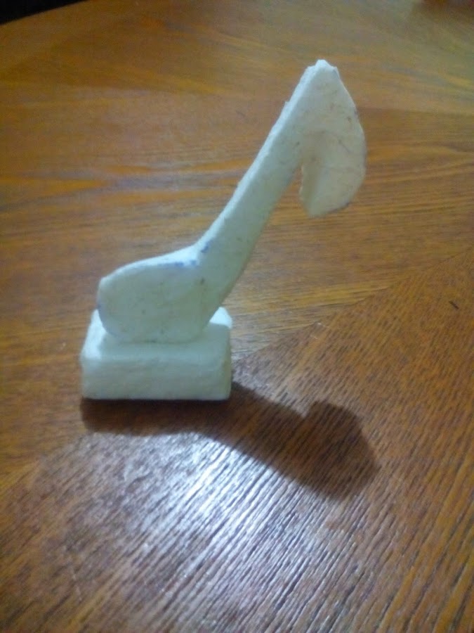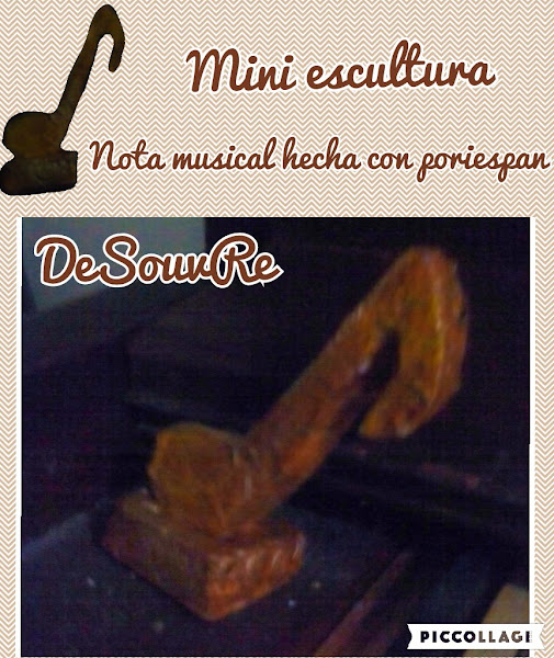 Y esta es mi propuesta: Una mini escultura en forma de nota musical hecha con poriespam para adornar mi piano