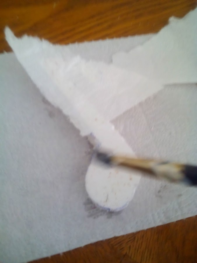 He cubierto la pieza con papel de cocina o servilleta y pegado con cola blanca diluida en un poco de agua.