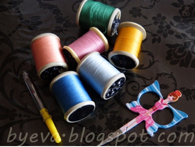Así que busqué por casa los "artilugios" necesarios e hice esta prueba con unos hilos y accesorios de costura para ver que tal quedaba.
