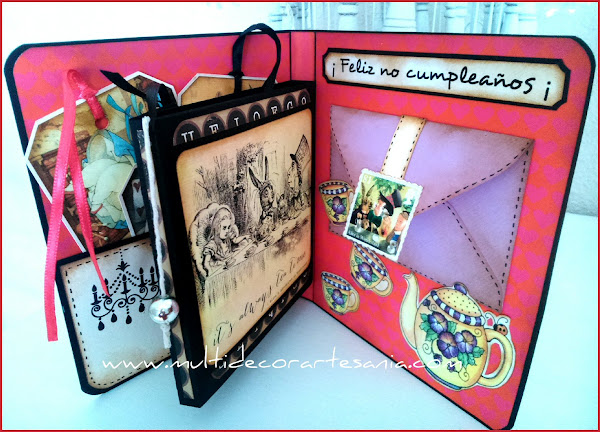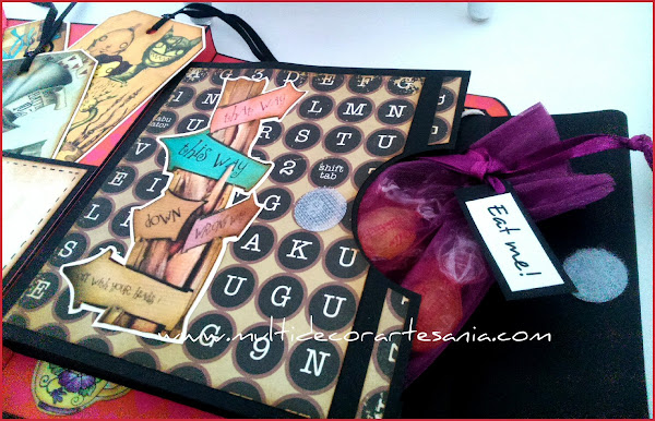 Formato: Flip book formado por tapas con bolsillo más tags y sobre, además de una caja central con cierre que contiene el regalo scrapero y otro muy dulce.
