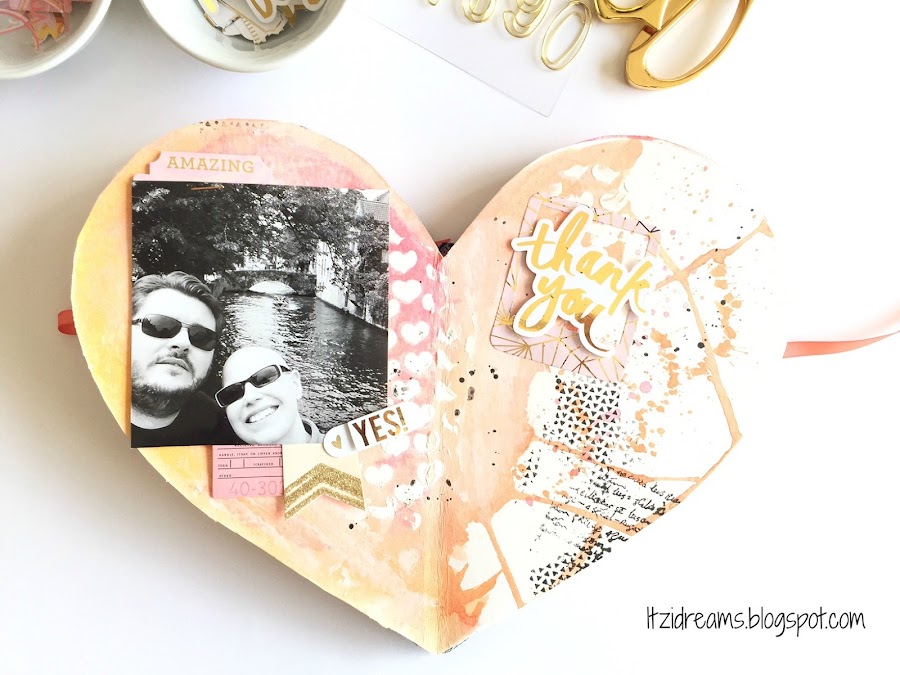 Los detalles que escogí son los Die Cuts de Heidi Swapp (Con Foil dorado, utilizando la Mini Minc) y algunos Die Cuts de Acetato de la colección Setember, también de Heidi Swapp.