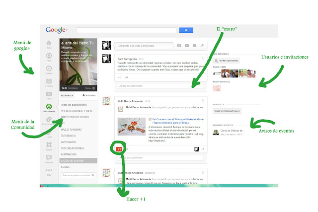 La bauticé "el arte del Hazlo Tu Mismo " y la verdad es que desde el primer momento fue un éxito inesperado, no dejan de aumentar los miembros y se ha creado como una sensación de familiaridad y buen rollito que me encanta, pero en general tenemos un problema...que no tenemos ni pajolera idea de como funciona esto del G+, pero hoy, oh maravilla de las maravillas, Sara de El pegotiblog, (quien ha sido además la última colaboradora del blog con un tutorial fantástico sobre como hacer una funda para el IPad) ha tenido la santísima paciencia de hacernos una guía tutorial para que nos vayamos familiarizando con este lío.