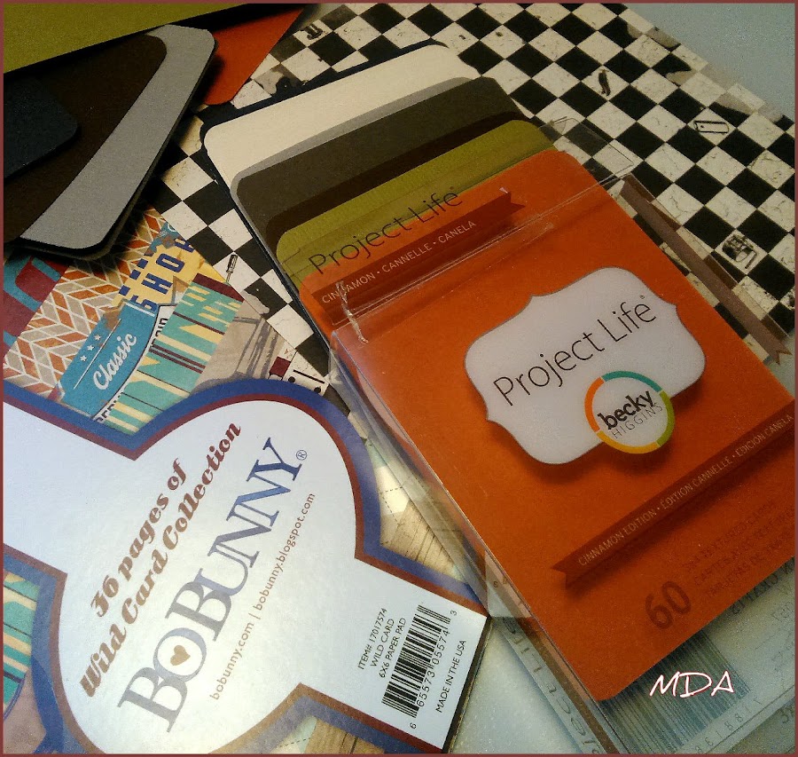 Para realizarlo he usado papeles de la colección "Wild Card Collection" de Bo Bunny y tarjetas texturizadas en colores lisos para Project Life de Becky Higgins