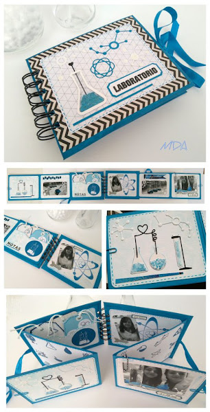 Como DT he hecho un mini con estructura acordeón doble, encuadernado con la Cinch, el tono elegido ha sido el azul y la base cartulina y papel de acuarela.