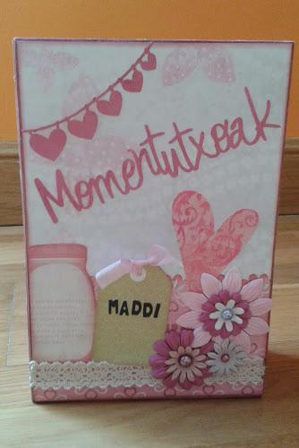 Disfruté mucho con este mini, ya que el margen para jugar era mucho más amplio. La Cameo es una fuente inagotable de recursos a la hora de adornas los trabajos. Los papeles que utilicé para este mini son de la colección "Love Letters" de First Edition, una colección muy dulce, como mi sobri ;-)