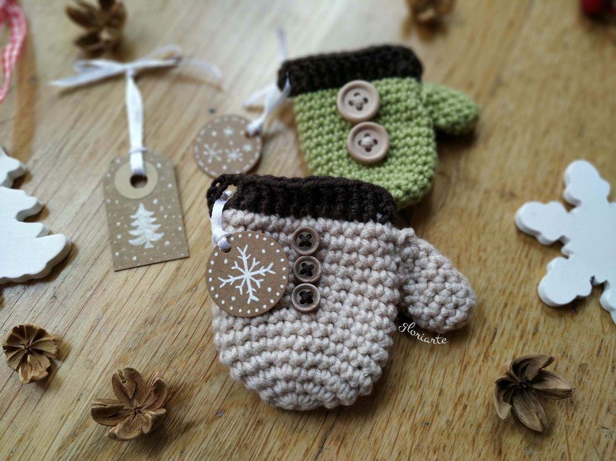 Mini manoplas de ganchillo multiusos Si si, el regalo ideal para aquellos a quién no sabes qué les puede hacer ilusión pero quieres tener un detalle con ellos. Tejemos una manoplita en crochet y dentro podemos introducir una tarjeta, billetes o monedas, o incluso alguna joya, pendientes, pulsera… son el envoltorio ideal Y además tienen doble uso porque es un adorno precioso para nuestro árbol en Navidad. Si estás pensando en los más pequeños, podría ser muy divertido buscar en el árbol las manoplas con “premio” el día de Navidad