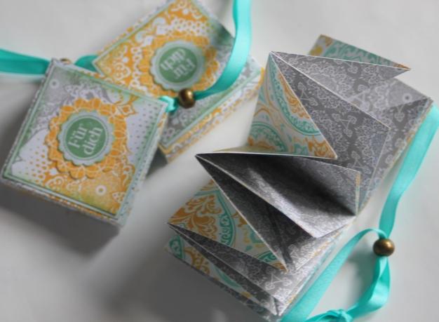 Un librito que se hace muy rápido y que si se desea se puede decorar con fotos o con sólo algunas frases. Estos cerrados tienen el tamaño de 2,5 x 2,5 cms.