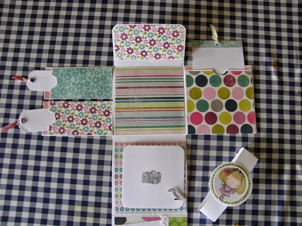 Con la misma estructura que enseñe en el mini de una tarde, alterándola un poquito en bolsillos y pestañas pero con el mismo esquema de un cuadrado de 12X12 repetido, he hecho este otro mini album