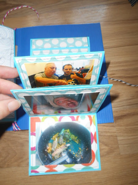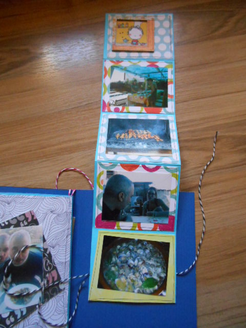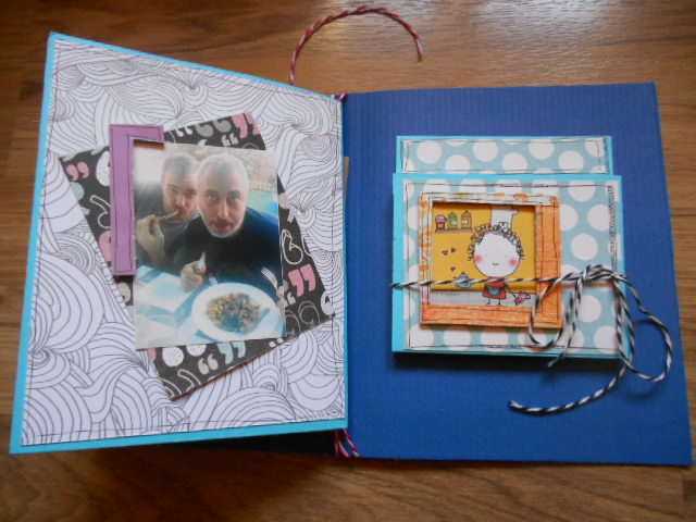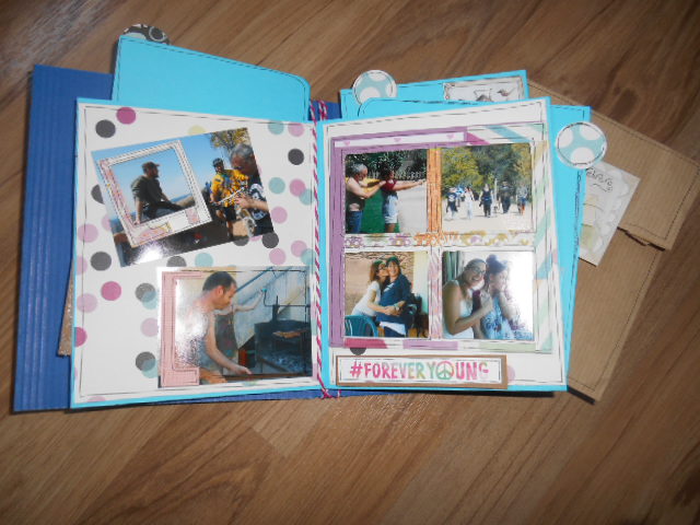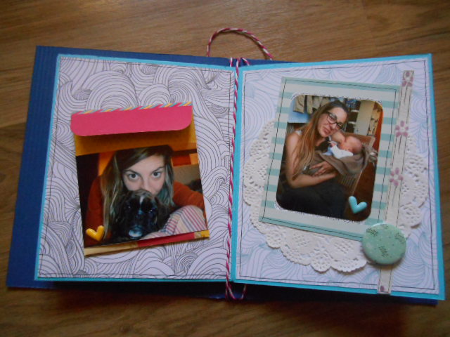 Con bolsillitos laterales y por la parte superior donde poner tarjetas y sobres para poner más fotos y anotar los sentimientos