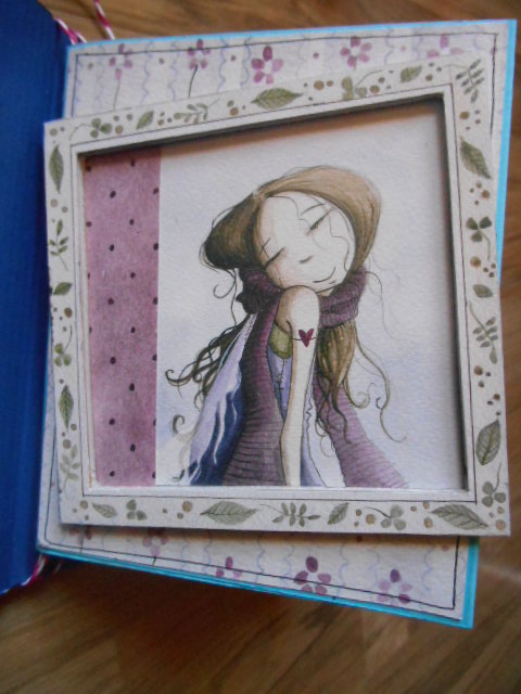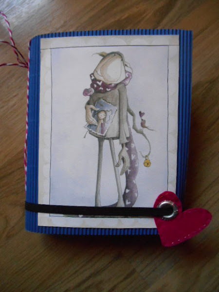 He utilizado una hoja que una de las colecciones que me encaaaantan... Un año mágico de Arte y Scrap, tiene unas ilustraciones supertiernas y bonitas, bueno no me demoro más y os enseño las fotos, la portada del mini la he hecho con papel corrugado y el cierre es una goma elástico con un adornito de corazón de fieltro