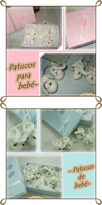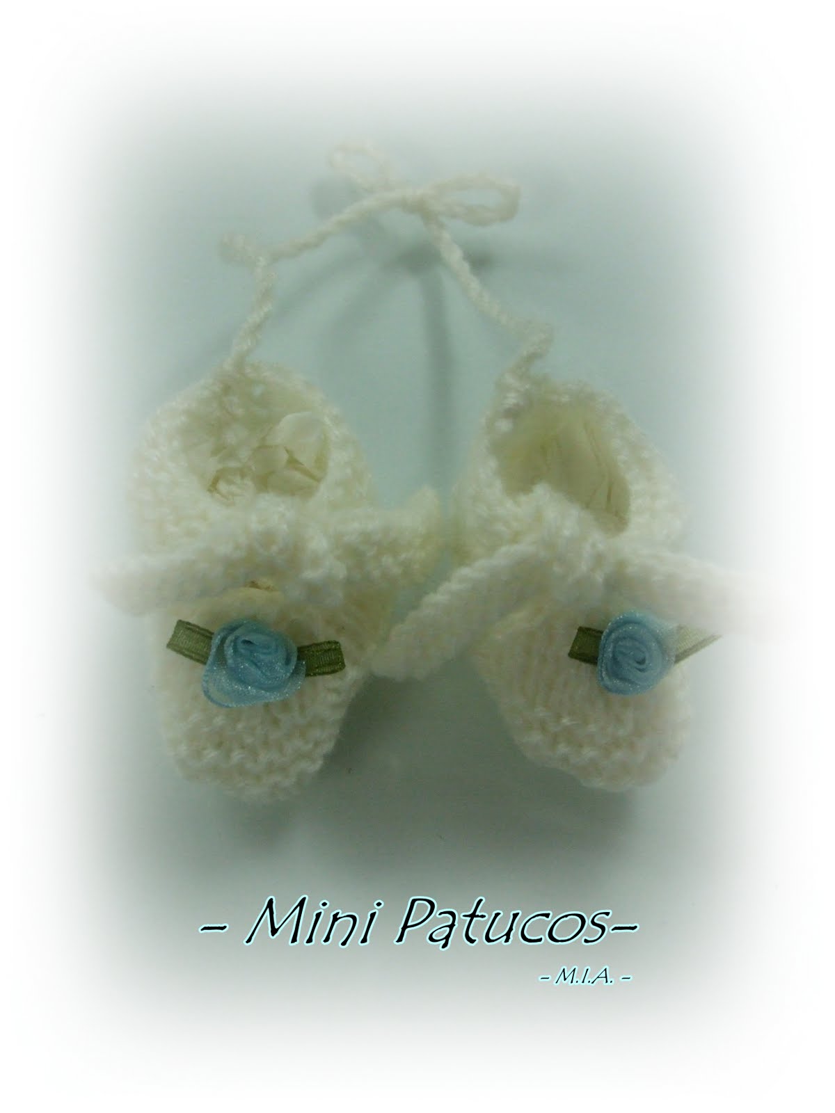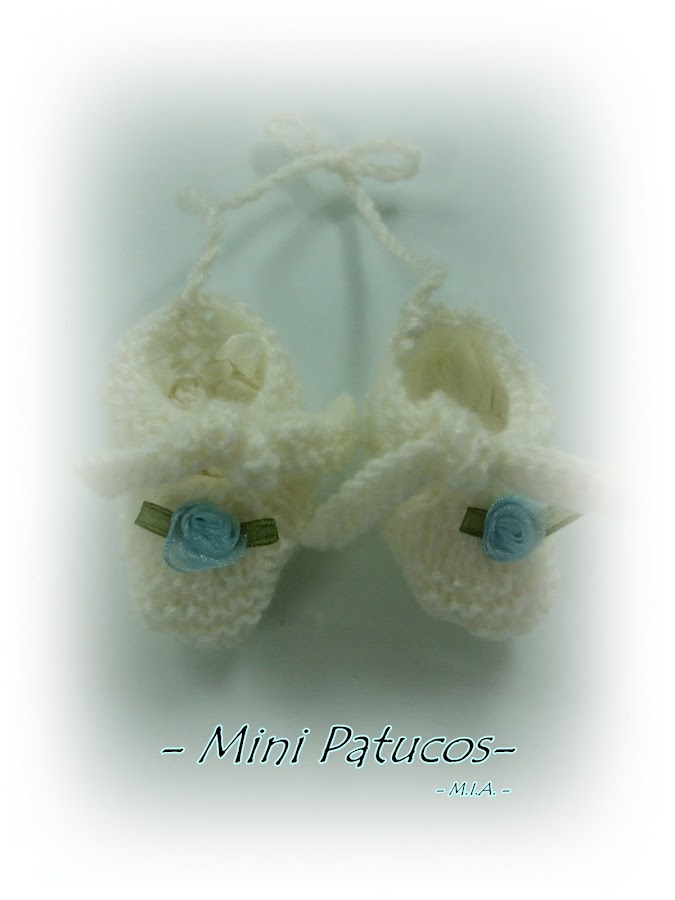 Unas vez terminados de tejer coser por el revés de la labor y poner una florecilla o lacito o el adorno que queramos en el centro del empeine y... ya está... MINIPATUCOS TERMINADOS!!!!