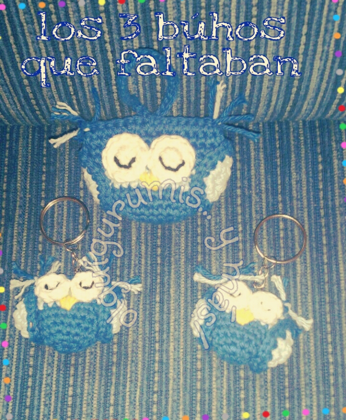 La versión mini de los peke búhos ya esta aquí!! y es más pesada de hacer que los peke búhos normales... En fin, a Carlos le gustó que era lo importante y ya tiene sus 4 peke búhos (2 pekes y 2 minis) en azul. Aquí los 3 que faltaban. Terminando pedidos atrasados y empezando cositas nuevas que, os adelanto, siguen siendo búhos... jajaja, pero de otra clase.