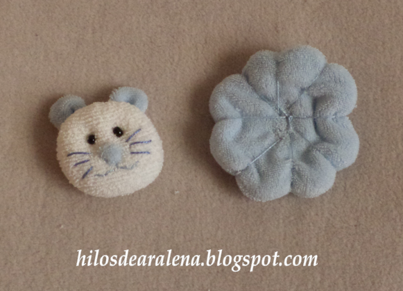En este caso un león hecho con un circulo de tela bastillado y relleno de vellón .