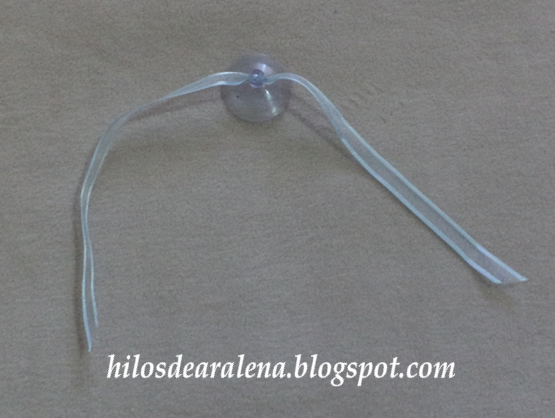 Ahora preparamos un trozo de cinta que enhebramos en la sopapa ( o ventosa).