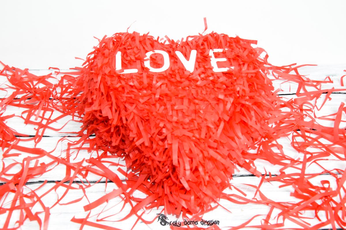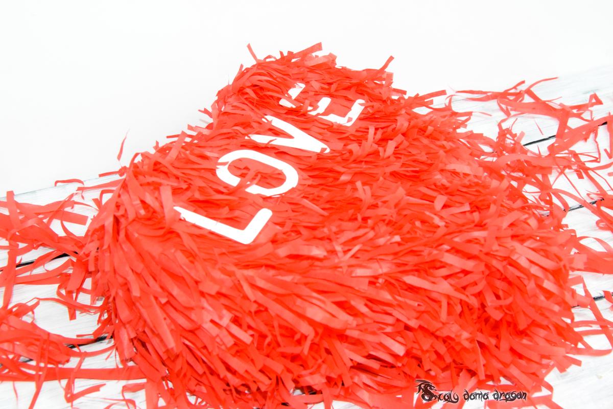 luego cortaremos e introduciremos confeti a la piñata, Una vez hecho esto trazaremos y cortemos una letras en cartulina blanca y luego las pegaremos en el corazón.