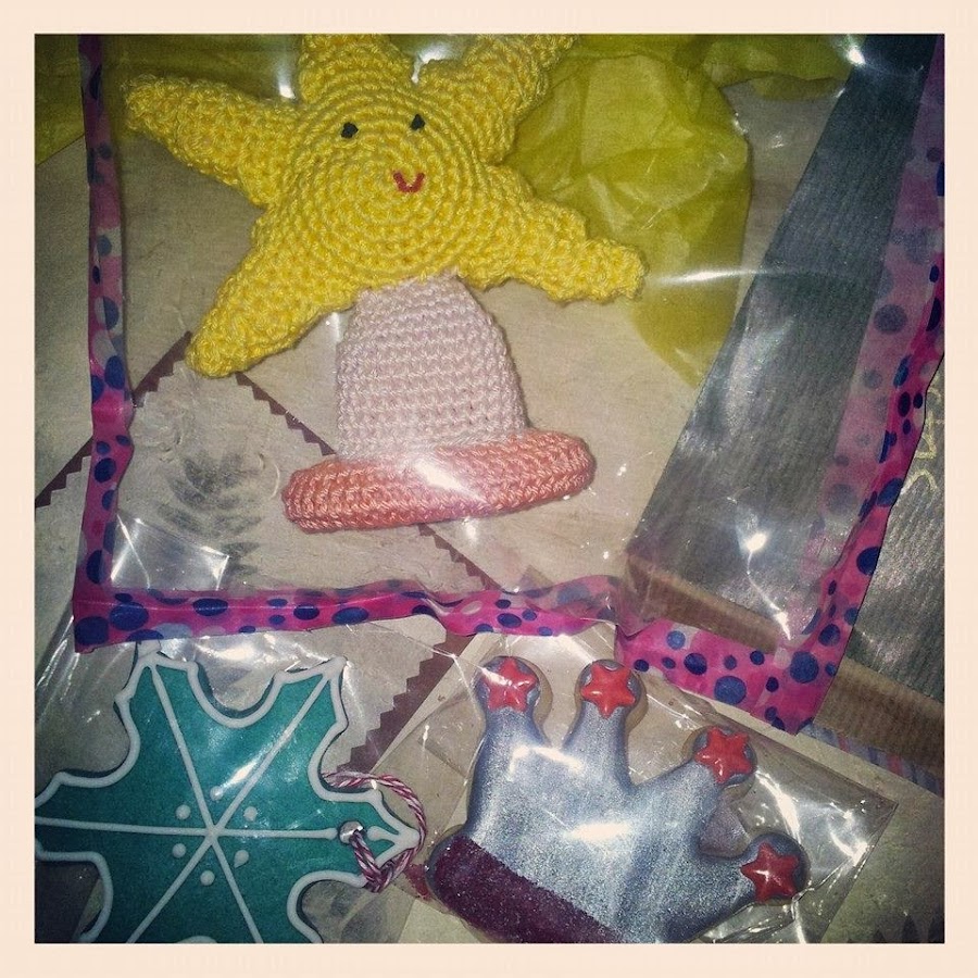 En su blog explica cómo lo preparó todo, lo más curioso es que el patrón del amigurumi estaba en ruso y se las tuvo que ingeniar para traducirlo. Mirad qué bonito todo lo que me envió. Ah! las galletas muy muy ricas :D
