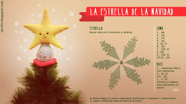 Yo me decanté por hacer una estrella de Navidad, así que buscando un poco por la red, me topé en el blog de Oh!Villo con una que era la ideal.