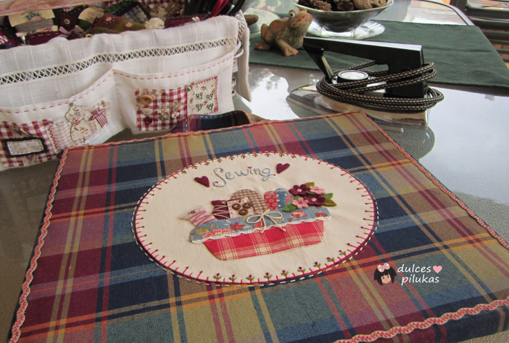 y decorada con un lazada. Y por supuesto llena de cositas de costura