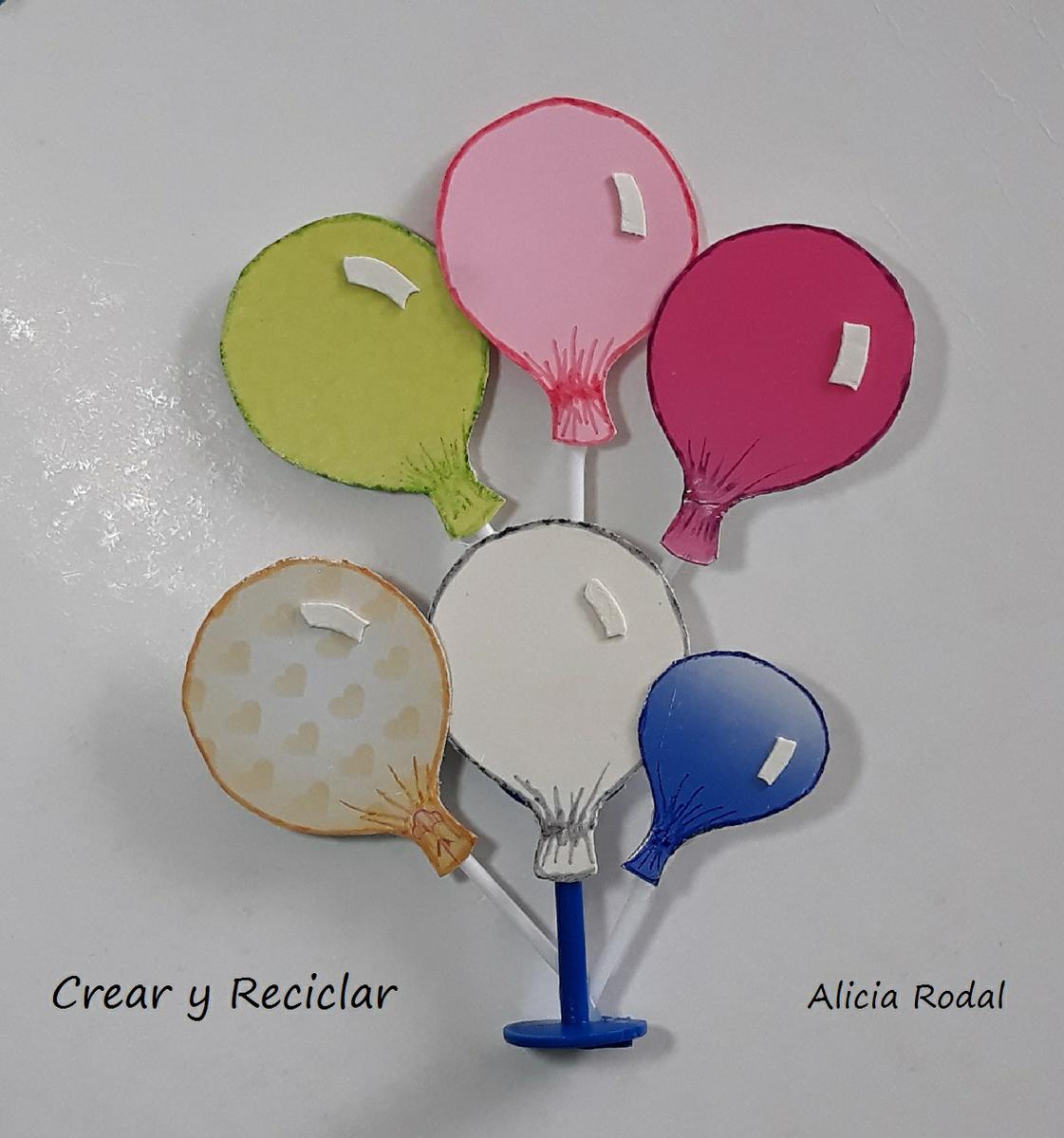 Cada uno de los globos los pegamos a los palito de oídos y estos a su vez los pegamos al palito de plástico que será la base de nuestro ramo de globos. Nos quedará de esta forma: