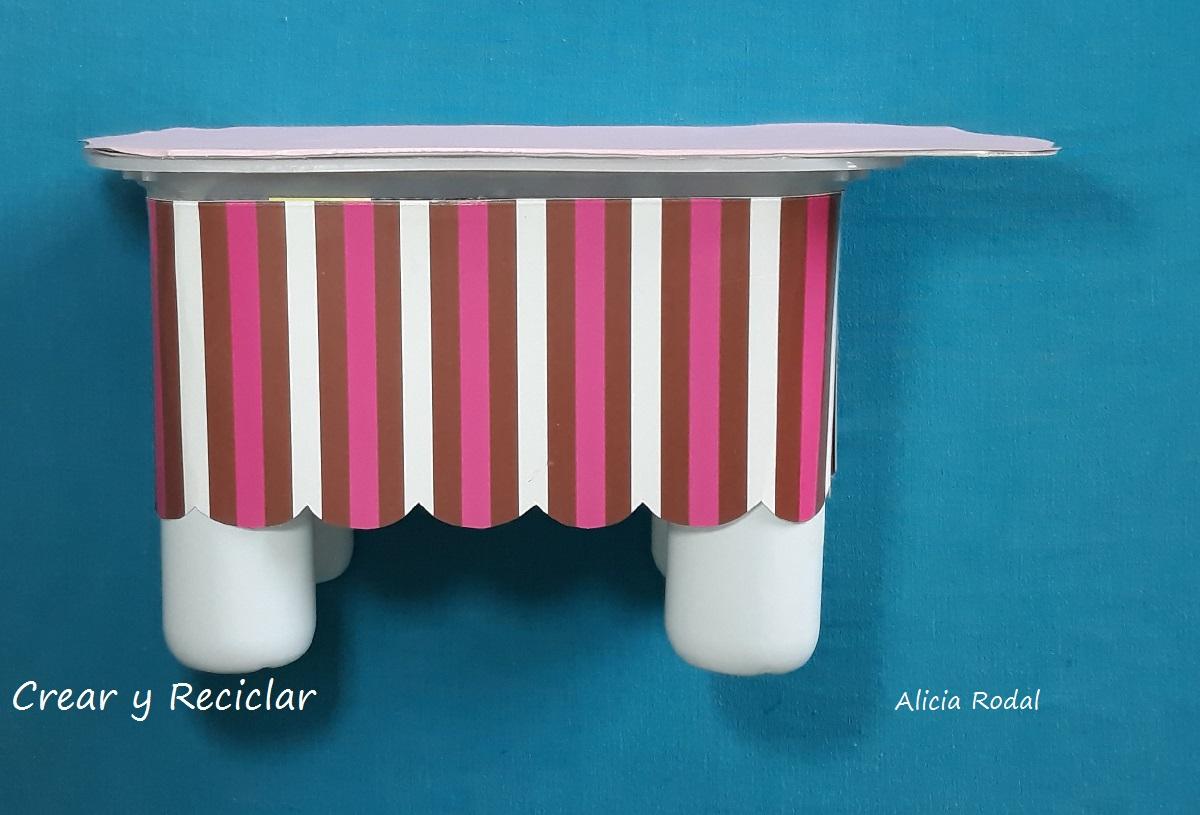 Ya nuestra tiendita de dulces está casi lista, tan sólo le falta un detalle final que me encantó cómo se ve. Para hacerlo vamos reutilizar: