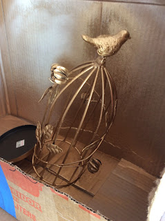 Fue esta jaula cuyo color me gusta muchísimo pero por estar siempre en la terraza ya esta con pequeñas marcas de oxido, y antes de que se fastidie completa, decidí darle color.