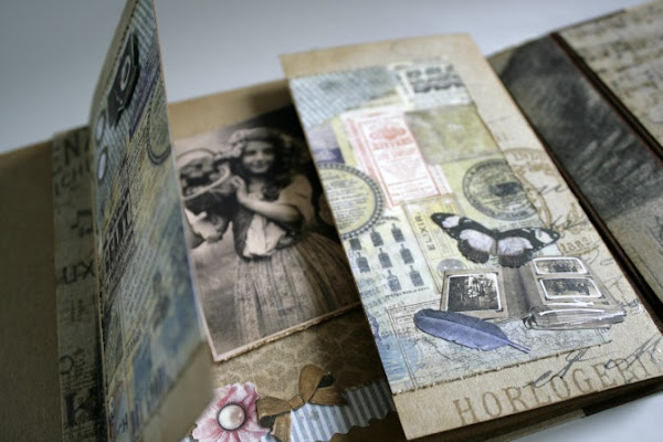 El vintage en el scrapbooking se presta mucho a la hora de hacer álbumes "heritage" aunque a la larga esto sería ya otro estilo, porque se trabaja con cosas realmente viejas (botones, encajes, cintas, hebillas...) y fotos de familia, como yo digo, son álbumes que se dejan de "herencia", esas fotos marcadas por el tiempo, en blanco y negro y/o sepias, que no debemos dejar perder.