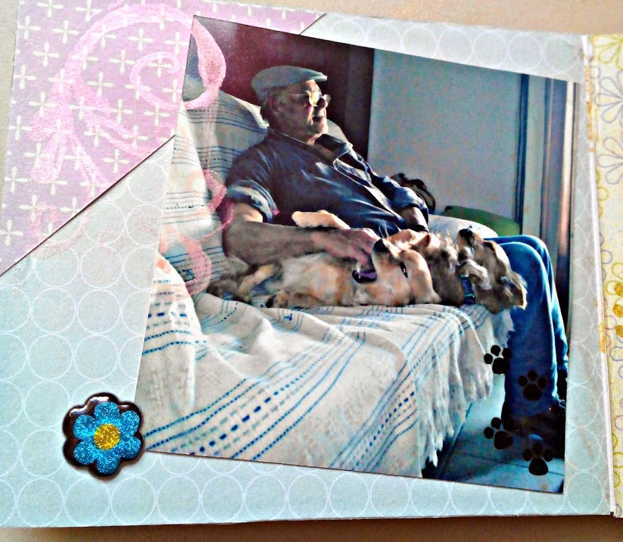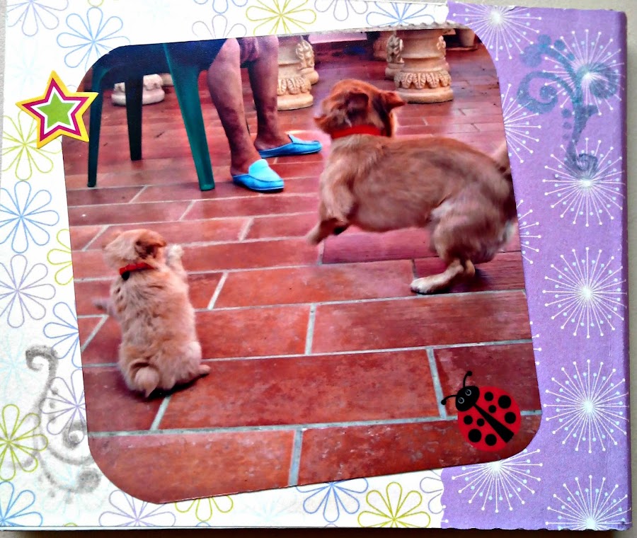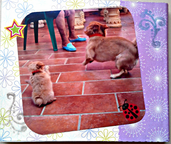 Hace muchos meses, cuando empecé a comprar cositas scraperas, mirando los tutoriales de Cinderella at midnight, me atreví a hacer un miniálbum que vi en sus tutoriales y no salió mal para ser el primero. Al cabo de unos meses, he decidido dedicarlo a mis dos amores perrunos, Apolo y Jimbo, la alegría de mi casa y de allí a donde vayan. Como el titulo indica, la semana pasada me lié la manta a la cabeza y compré los Perfect Pearls y no he dudado en usarlos, aunque no me han salido tan bien como esperaba, pero he aprendido el porqué. Os lo muestro: