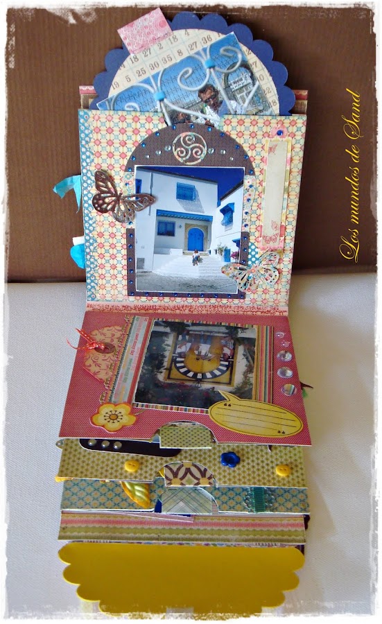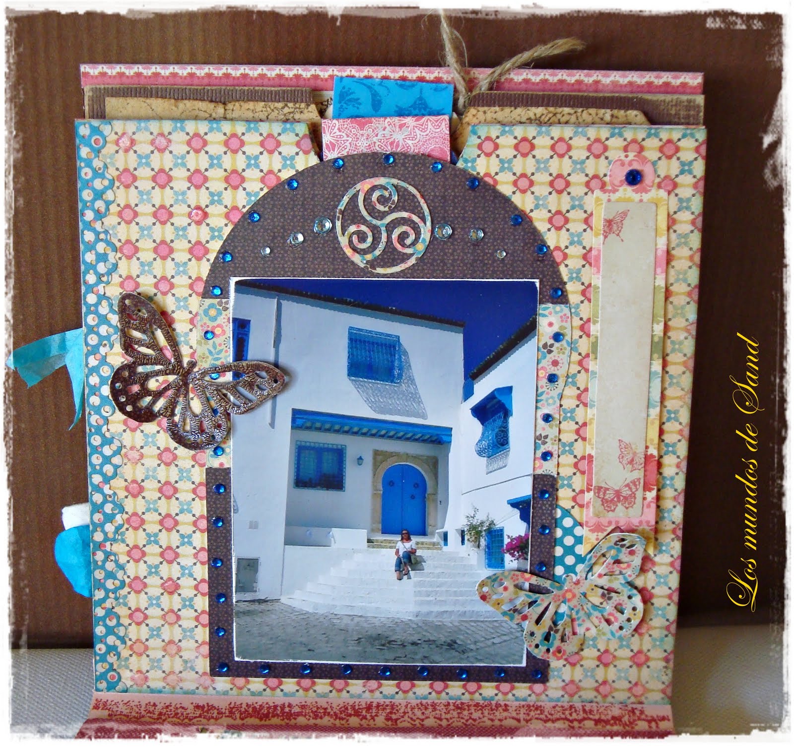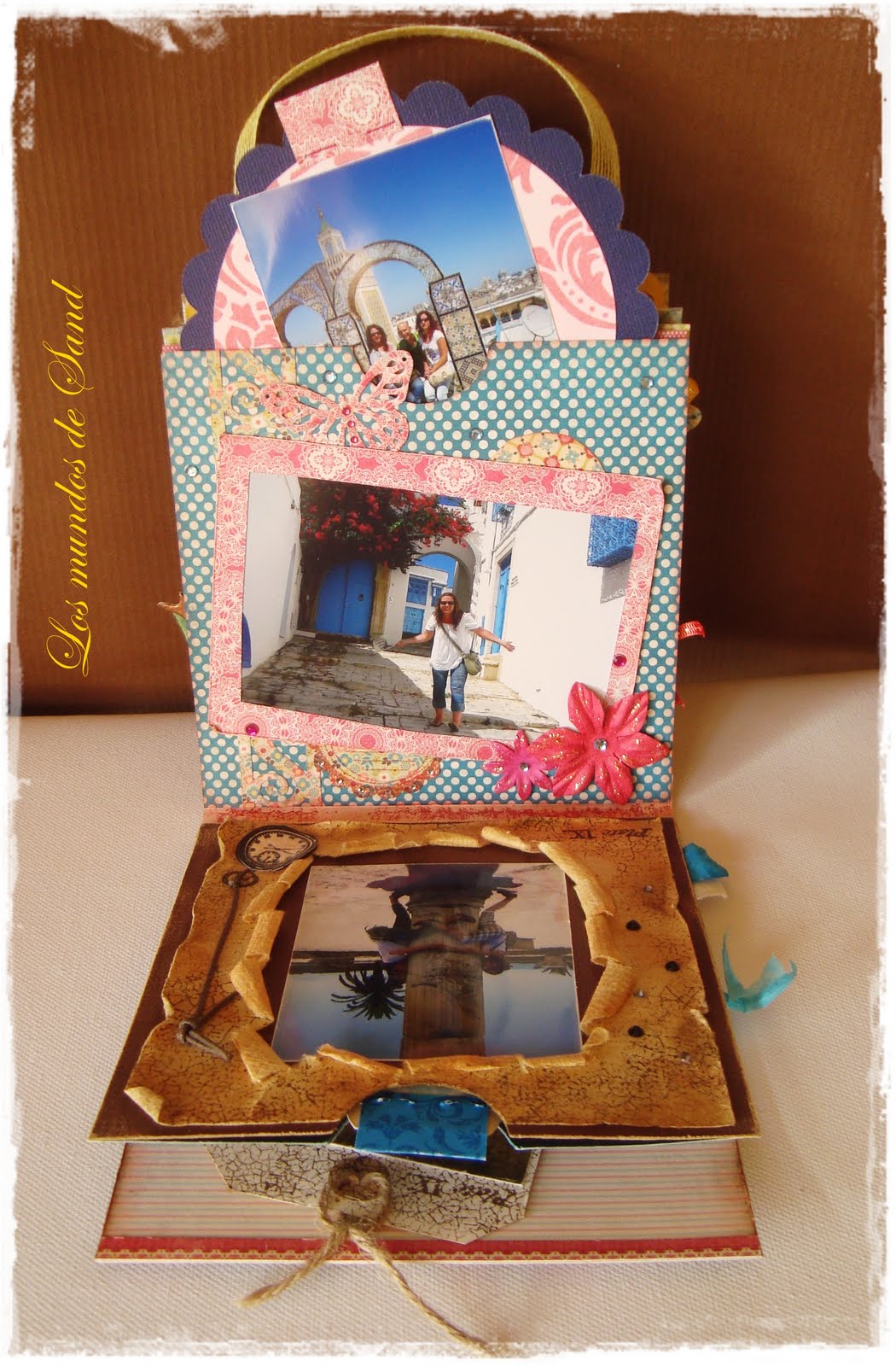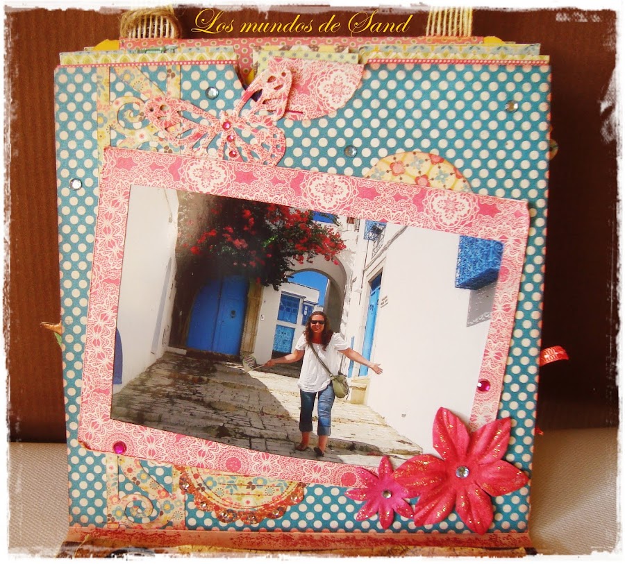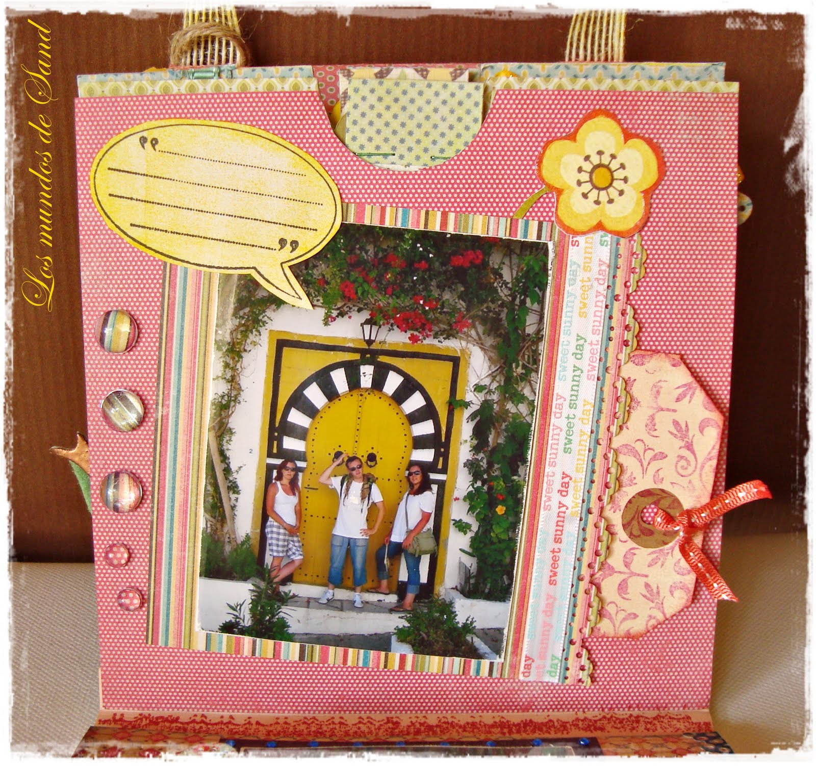 Aqui teneís el bolso cerrado, en el lateral podeis ver las cinco páginas que contiene. Podemos decir que el mini se abre como un desplegable con muchos bolsillos, como cualqiuer bolsito que se precie. Los papeles son de la colección "Stela and Rose" de My mind´s eye.
