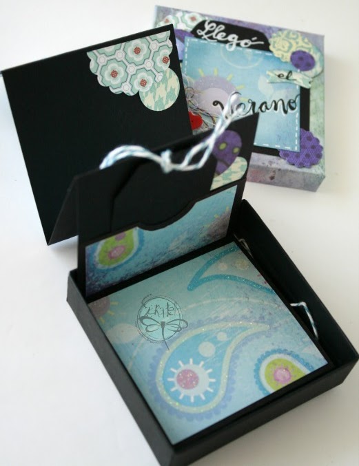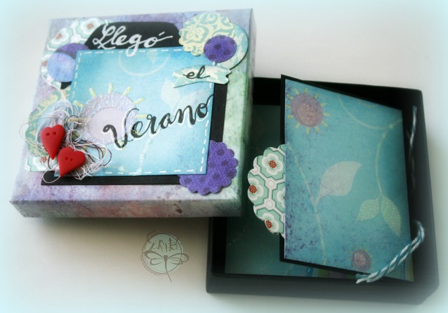 Aqui ha llegado con una ola de calor de la noche a la mañana! para celebrarlo qué mejor que un miniálbum, tan mini que cabe en una cajita de 8,5 x 8,5 cms.