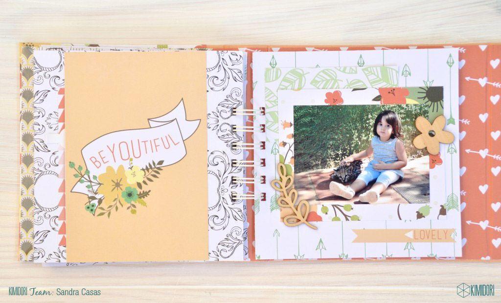 Recupero mi primera entrada para Kimidori, un miniálbum en forma de cajita, de estos que llevan porción doble de cartonaje y mucho scrap.