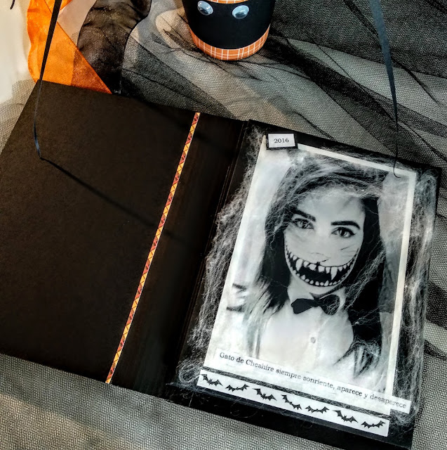 En este álbum guardará Elena las fotos de los disfraces de estos último años, así que he puesto la única que tenía (con un disfraz del gato de Alicia en el país de las maravillas) y el resto ya las pondrá ella.