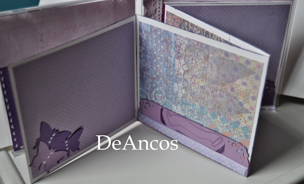 En verano hice unos minialbums para regalar a unas amigas, pero no me quedé con foto y no tengo de todos. Ahora acabo de hacer otro para otra amiga, Marina. Utilicé papeles con los tonos preferidos por ella: el lila y el morado. La hadita está troquelada dos veces. Una en cartulina lila y la segunda en papel vegetal que pegué encima de la cartulina, dejando las alas al aire.