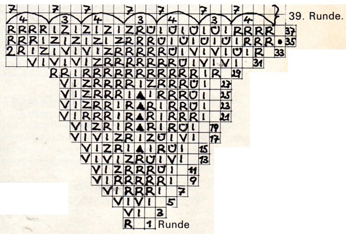 Como empezar.......: Levantar 8 puntos y seguir el esquema hasta la vuelta 39. Cerrar los puntos con cadenetas al crochet.